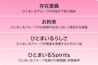 ひとまいるグループは、「地域の人々の暮らしのどんな小さな願いも叶えたい」という想いの実現に向け、ステークホルダーとの協働・共栄を通して、「持続可能な社会の実現」と「グループの成長」の両立を目指してまいります。